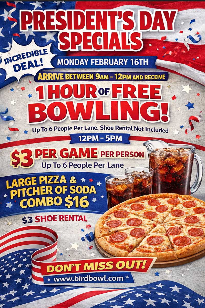 COME CELEBRATE YOUR BIRTHDAY AT BIRD BOWL